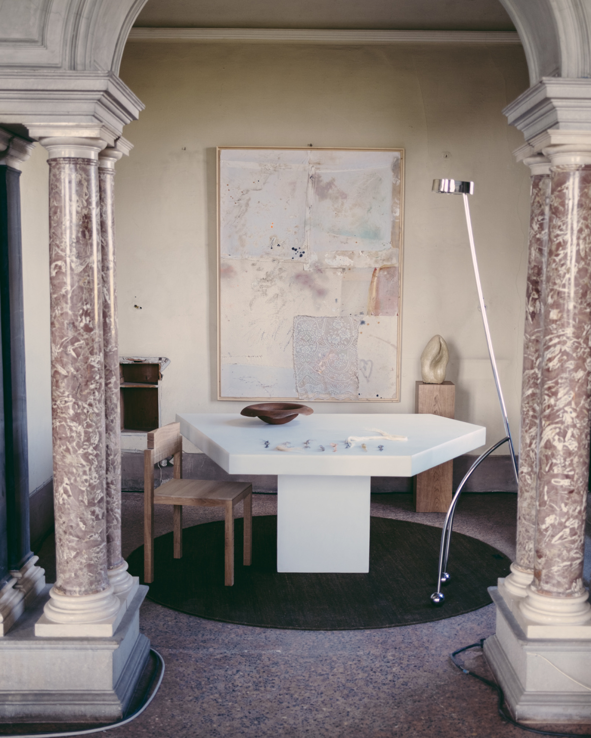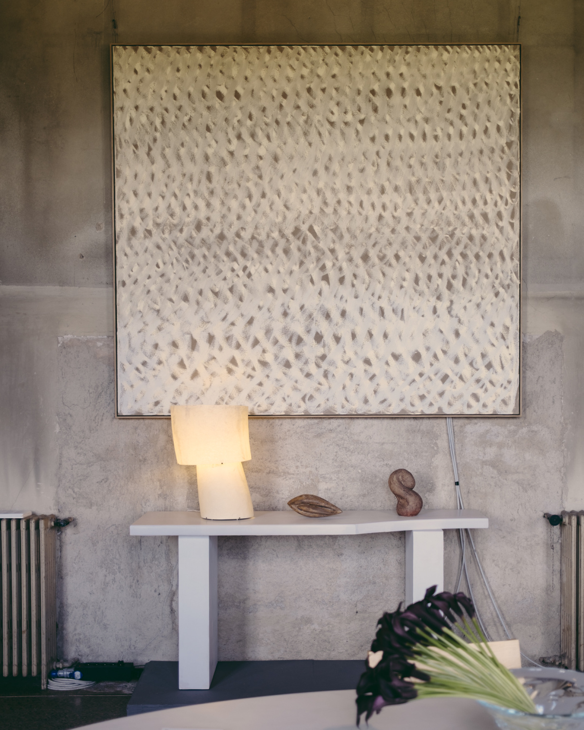 - Mush table lamp by Kilzi; “Inner” painting by Maria Yelletisch