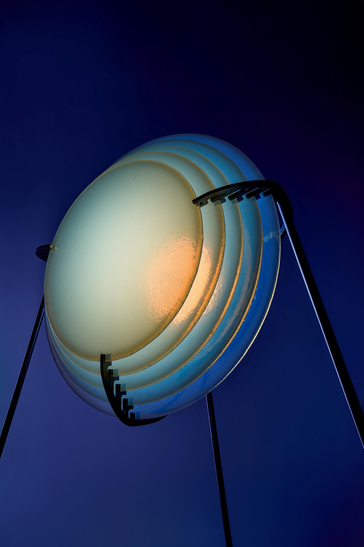 Dace Sūna, a Latvian designer based in Rīga, made “Sky Set,” a layered opalescent glass light built from stacked curved disks that shift from cool sky blue to warm sunset tones using the Rayleigh scattering effect. (I would love to live with this floor lamp!).