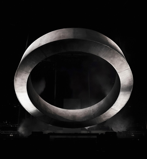 This led to the concept of the pillars rising out of the audience. There are three pillars, each about 25 feet tall. Anyma was positioned on the center one with the robotic cellos on the left and right. In the center pillar, we built a large-scale replica of a quantum computer, which acted as a light installation with strobes built inside. We also incorporated smoke and haze machines to create moments where the screen went pitch black. The audience would feel like they were outside in a void, with these monolithic pillars rising from it.