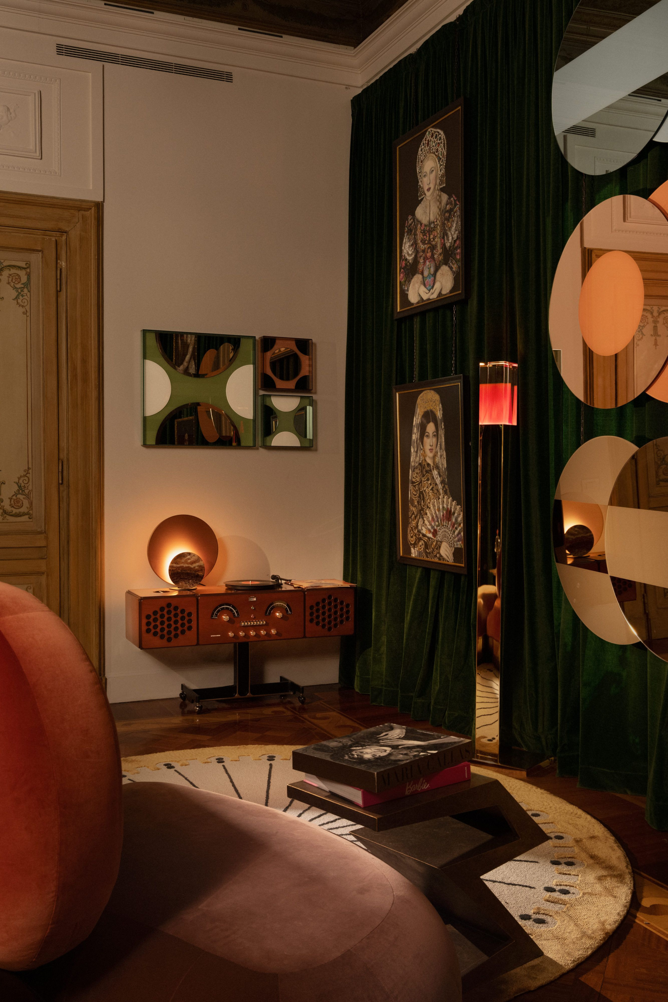 “In the opulent setting of the L’Appartamento palazzo, we made these spaces into their own kind of party,” says Alexandra Champalimaud, founder and president. “We envisioned a seductive gathering place to pour drinks before and after the crowds, and an intimate haven for quiet and enchanting moments, all in celebration of La Dolce Vita.”