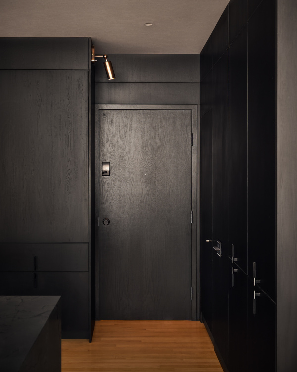 Custom cabinetry from German brand nobilia played a central role in the renovation providing sleek, highly customizable storage that integrates seamlessly. Buster & Punch hardware and Schlage electronic locks enhance the clean look with keyless entry.