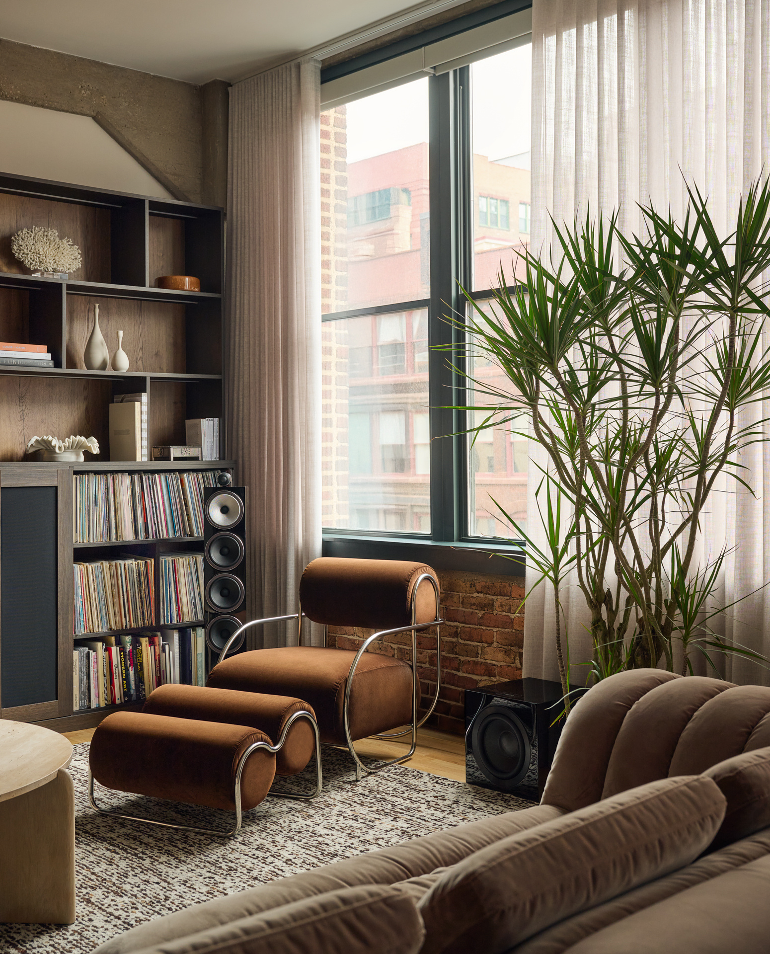 Before launching Sixtysix, Chris spent nearly two decades publishing magazines within the music industry. Unlike most homeowners who often conceal their speakers within a space, the design team celebrated the Bowers & Wilkins sound system’s glossy black finish as an intentional design element.