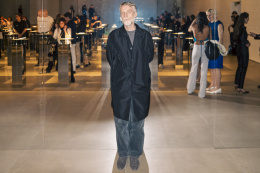 Faye Toogood is in the Poltrona Frau showroom during Salone, and she has already lost the argument she most wanted to win this week. Her new bed debut, the very first time she’s seeing it completed in person, should be in the middle of the room. Not against a wall. “If I had been allowed to do the space, this would be right in the middle. No one can see it,” she says. “I asked them this morning, and they’ve called a few people, and maybe that might happen tomorrow. This is a piece of furniture and they’ve upholstered the whole thing with beautiful leather.” The back is rounded and cushioned like the back of a sofa. The legs are cylindrical aluminum, upholstered in Pelle Frau Nest Impact Less leather in the Cemento colorway. She calls it LieLow. “I wanted that feeling like you’re floating on water or a cloud.” Despite its more traditional staging, and that it is 10am, the urge to climb into it was strong.