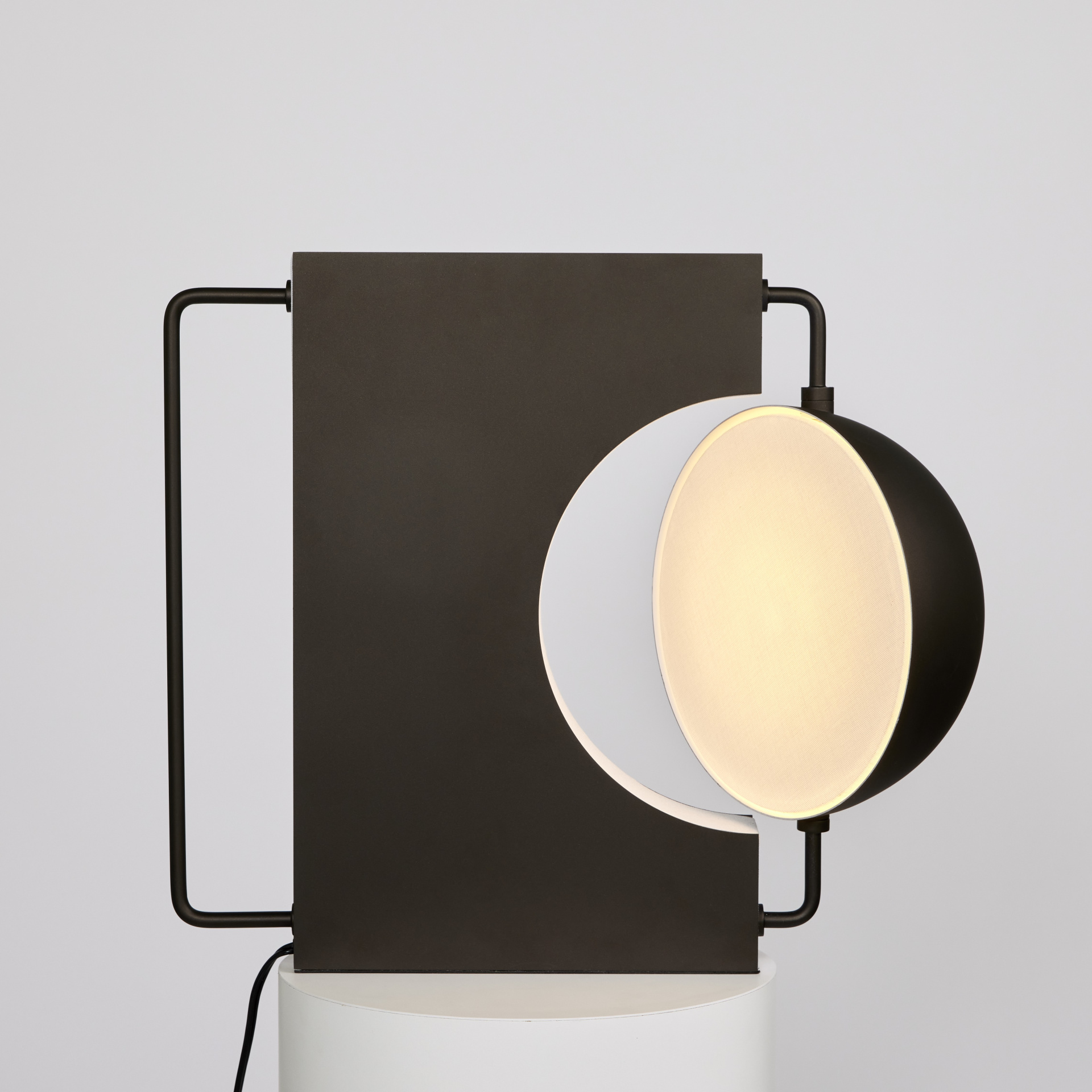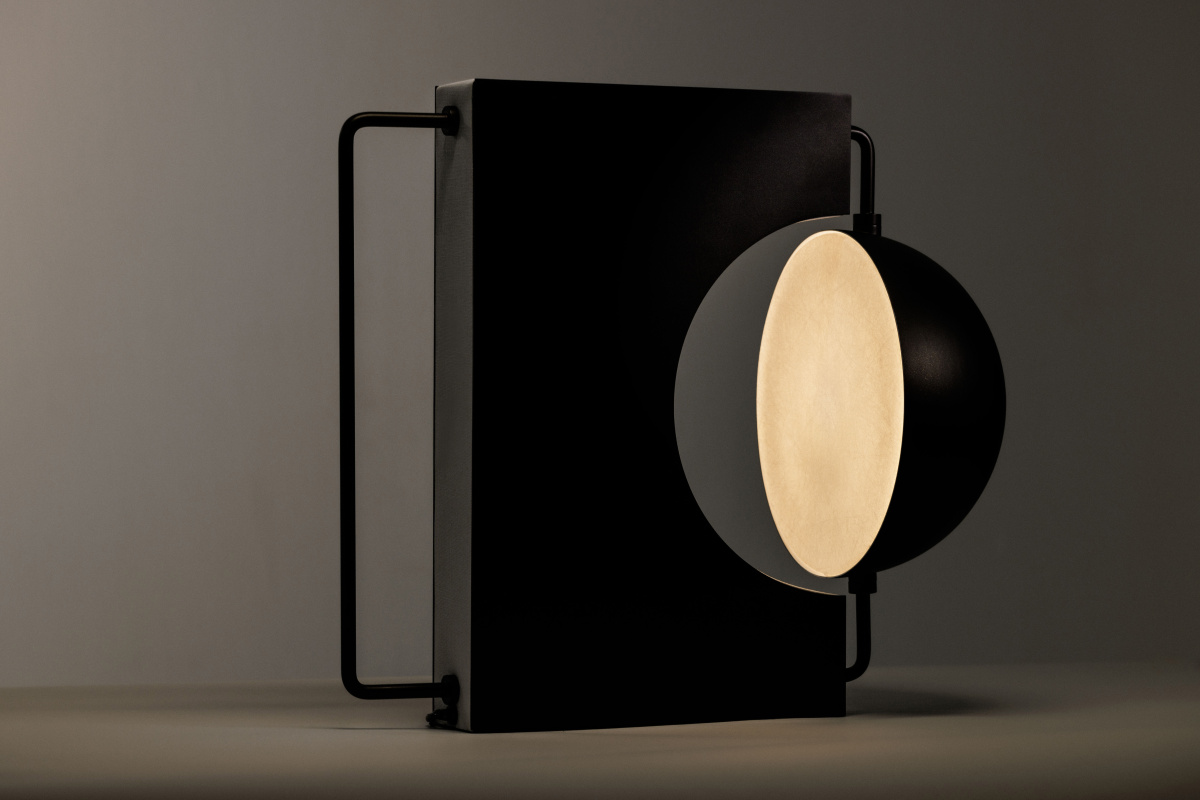 Jialun treats structure as part of the design, not something to conceal. “The proportions stuck because they felt right, not because they followed any formula.” What emerged was a shade that pivots up to 40 degrees on each side in an eclipse-like motion, allowing users to direct light based on need rather than moving the entire lamp. While adjustable lamps have been a staple since the 1930s, from George Carwardine’s spring-balanced Anglepoise to industrial swing-arm designs, most adjust via articulated arms or hinged necks. The Half Table Lamp’s approach is more sculptural: the shade itself pivots on the light source in a way that recalls Vico Magistretti’s 1967 Eclisse lamp, which used rotating hemispheres to simulate an eclipse effect for dimming.