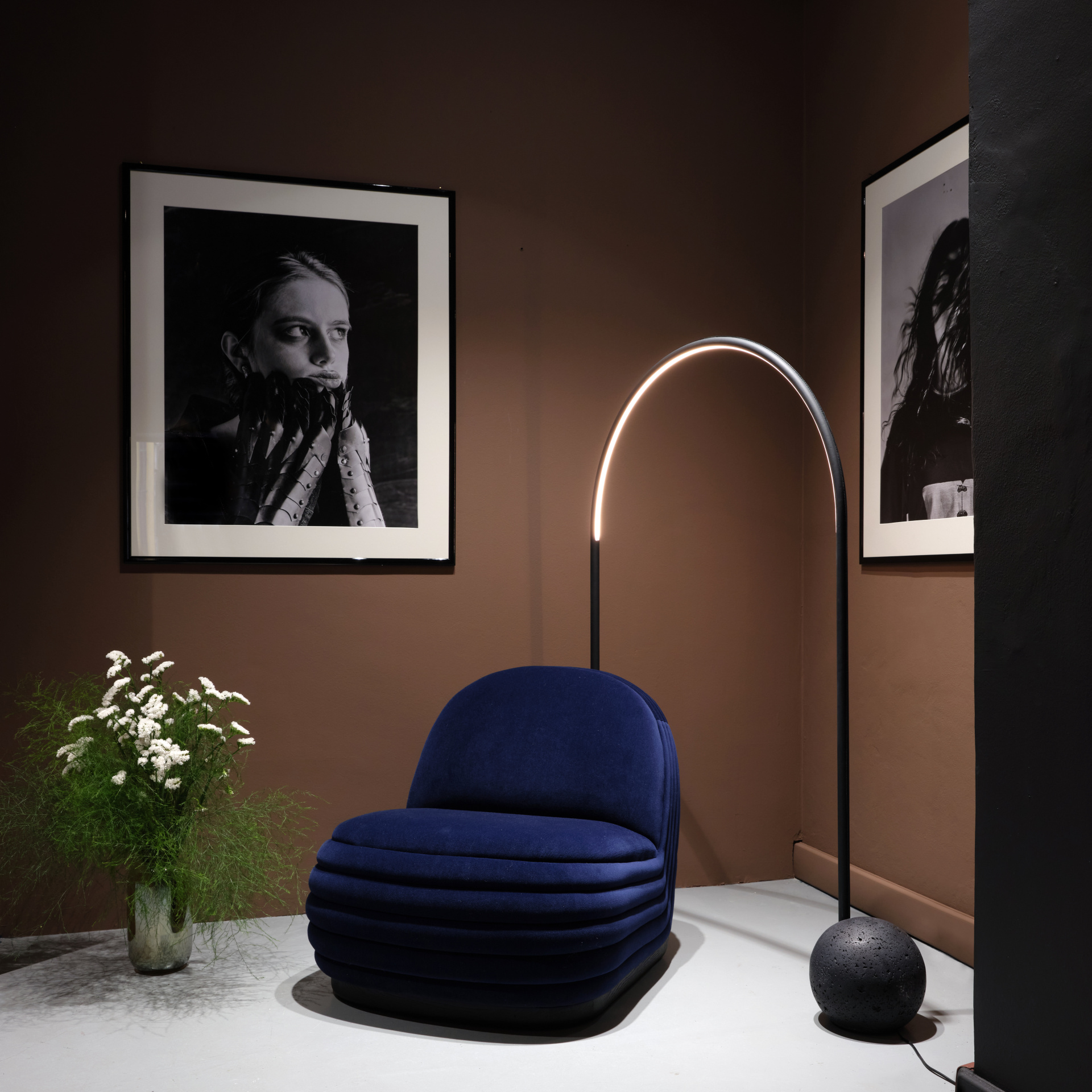 - At Milan Design Week 2025, the “Inspired Nuances” exhibition brought together the talents of French designers Mercœur and Franck Genser, American paint brand Tonester, and Sixtysix magazine Editor-in-Chief, Chris Force. Above, PULSE armchair by Joëlle Rigal and SÉRIF floor lamp by Marina Declarey of Mercœur. Photography by Chris Force. Photo courtesy of S2H