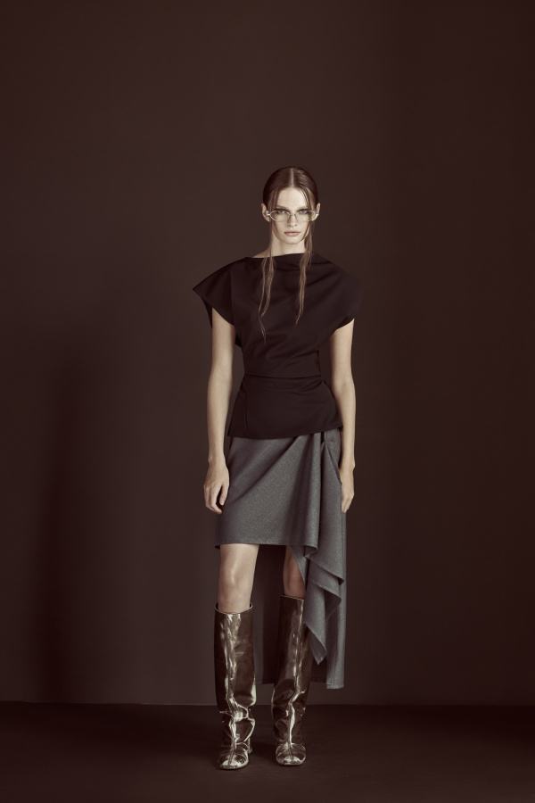 Top and skirt from JADE CROPPER F/W ’25 look 22. Eyewear by GENTLE MONSTER. Boots by MIISTA