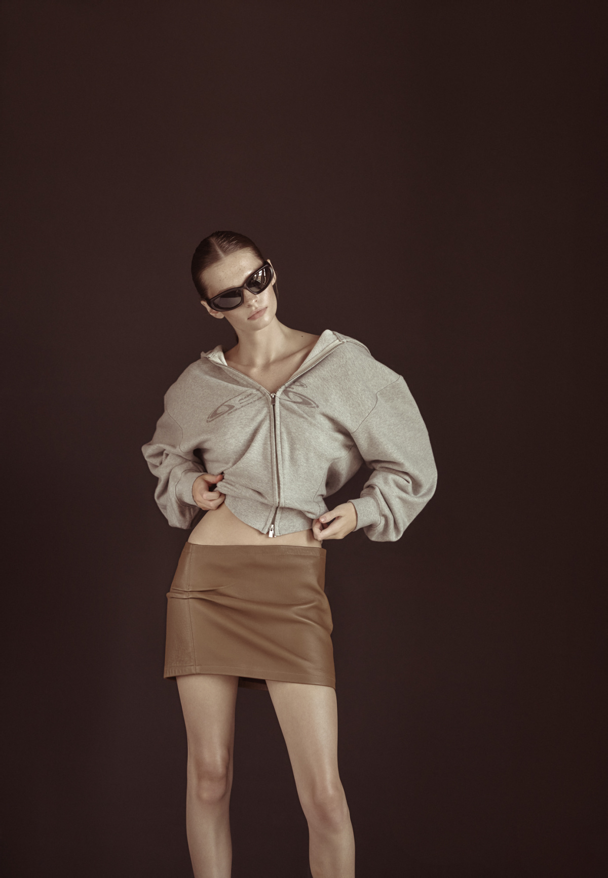 - Zip hoodie and skirt from JADE CROPPER F/W ’25 look 1