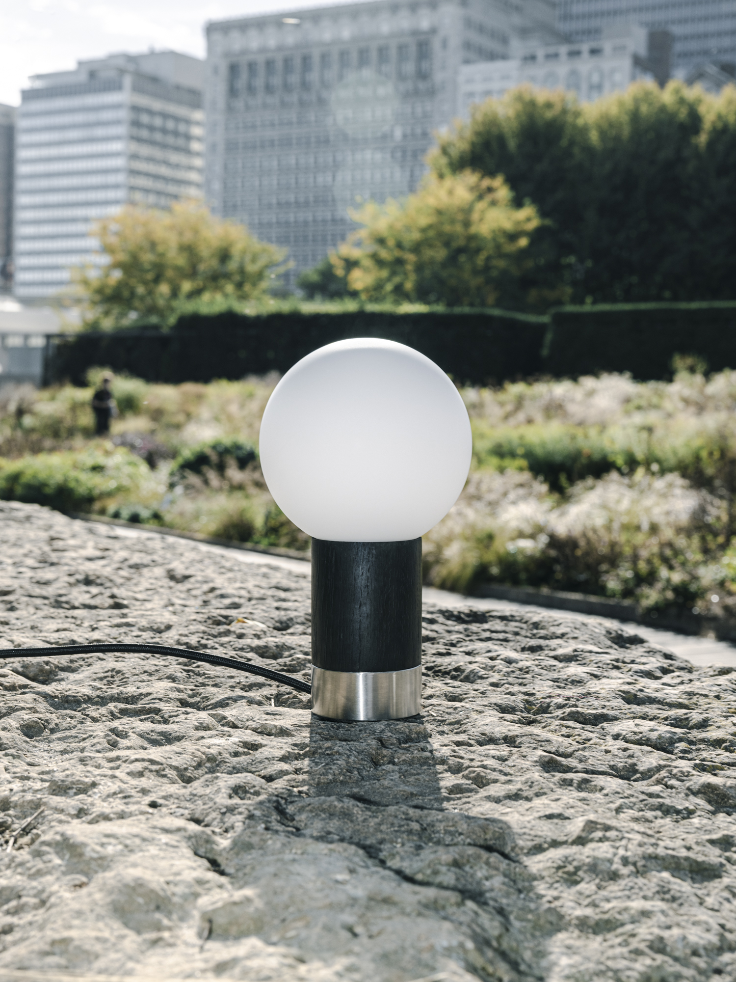 → HOLLIS AND MORRIS’ Catkin table light takes its cue from nature’s most optimistic moment, spring’s first bloom. The hand-blown frosted glass globe sits nestled in solid wood like a luminous bud ready to open, creating an organic relationship between materials.