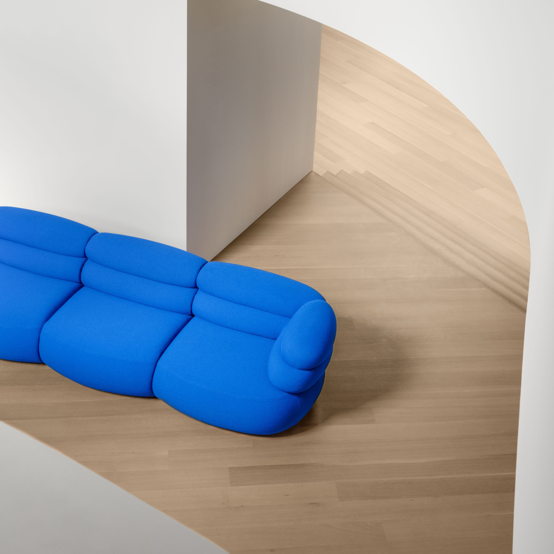 Moving from buildings to sofas also required Johnston Marklee to confront new constraints. The curves of the sofa’s joints demanded four-way stretch fabric that could bend in multiple directions without puckering or seaming.
