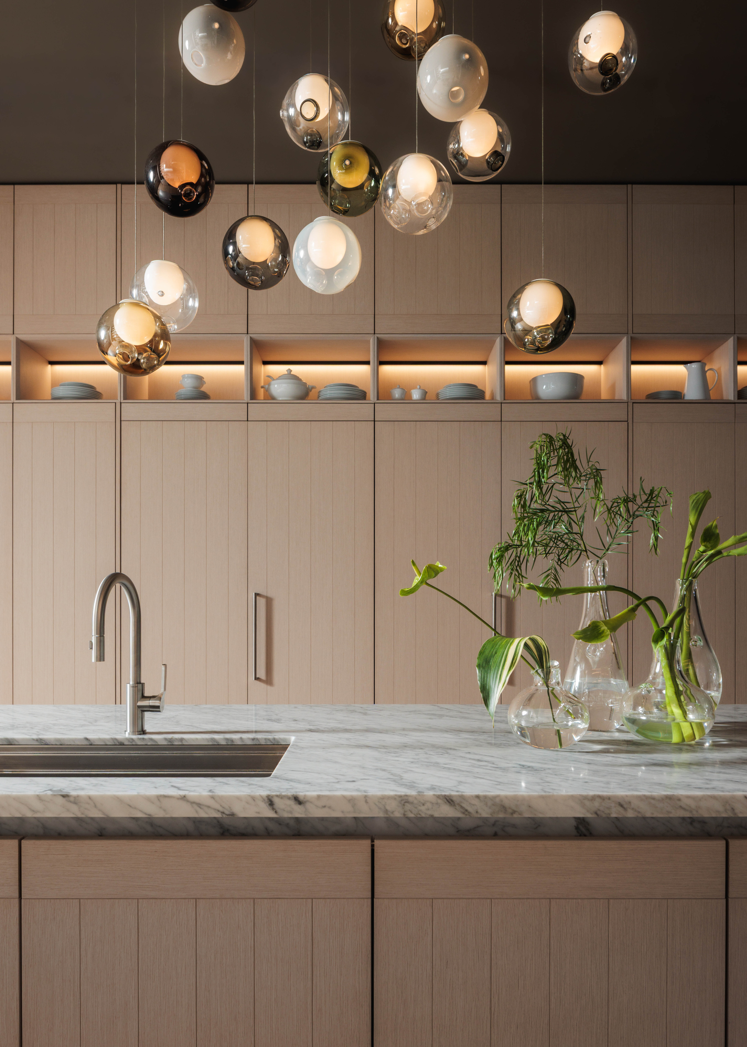 - Moment, designed by Kotaro Usugami, is a sculptural table lamp of interconnecting stainless steel tubes, evoking a sense of time suspended through its floating, rhythmic form. Photo by Chris Force
