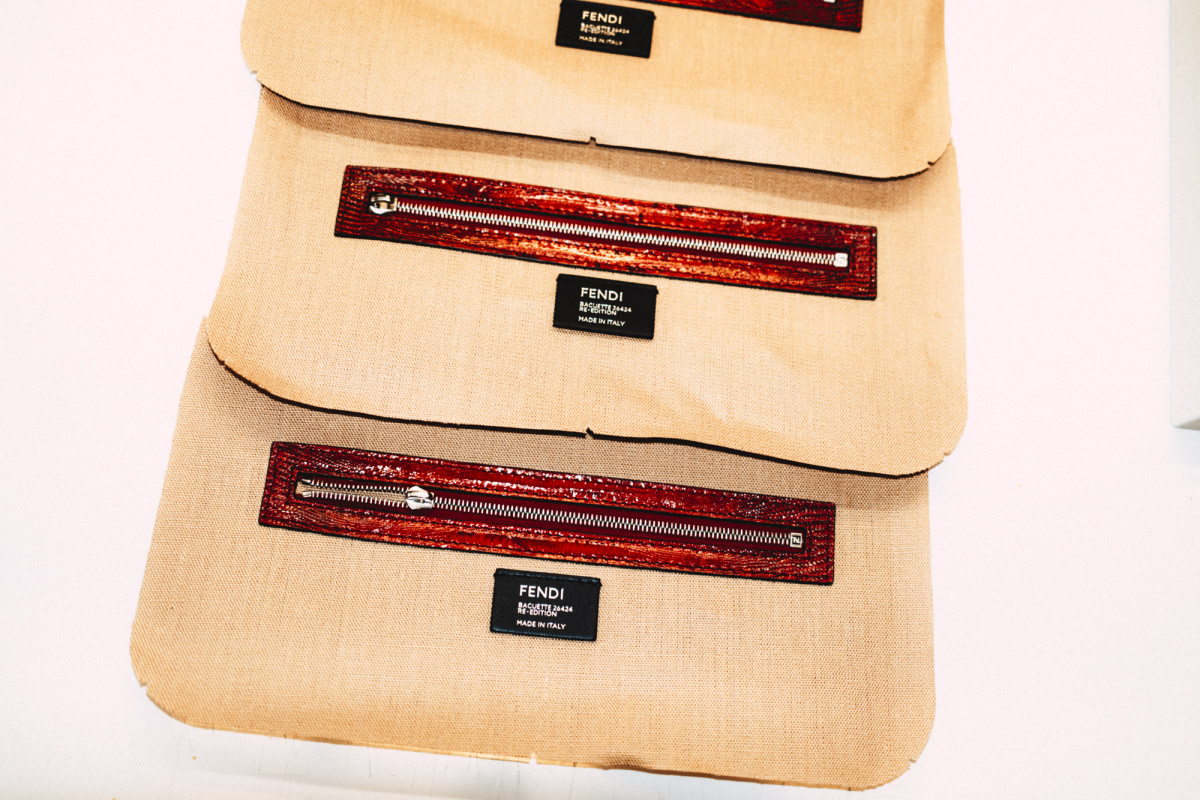 The ground floor of the new Palazzo Fendi, at the intersection of Via Montenapoleone and Corso Matteotti, was doing its job. All 20 re-editions of the Baguette bag were staged on wooden art crates, each one a different translation of the original 1997 silhouette. There were hand-embroidered mirror tiles, cascading paillettes, beading and lustrini, and raffia stitched in the Fendi tiger motif with chain work.