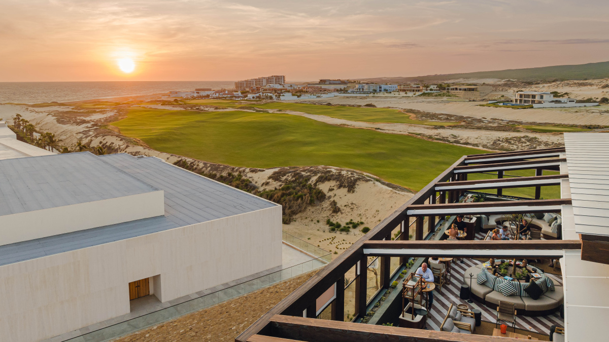 Terraces overlooking the grounds and Pacific Ocean beyond become the natural setting for evening dinner and conversation. Photo courtesy of Nobu Los Cabos
