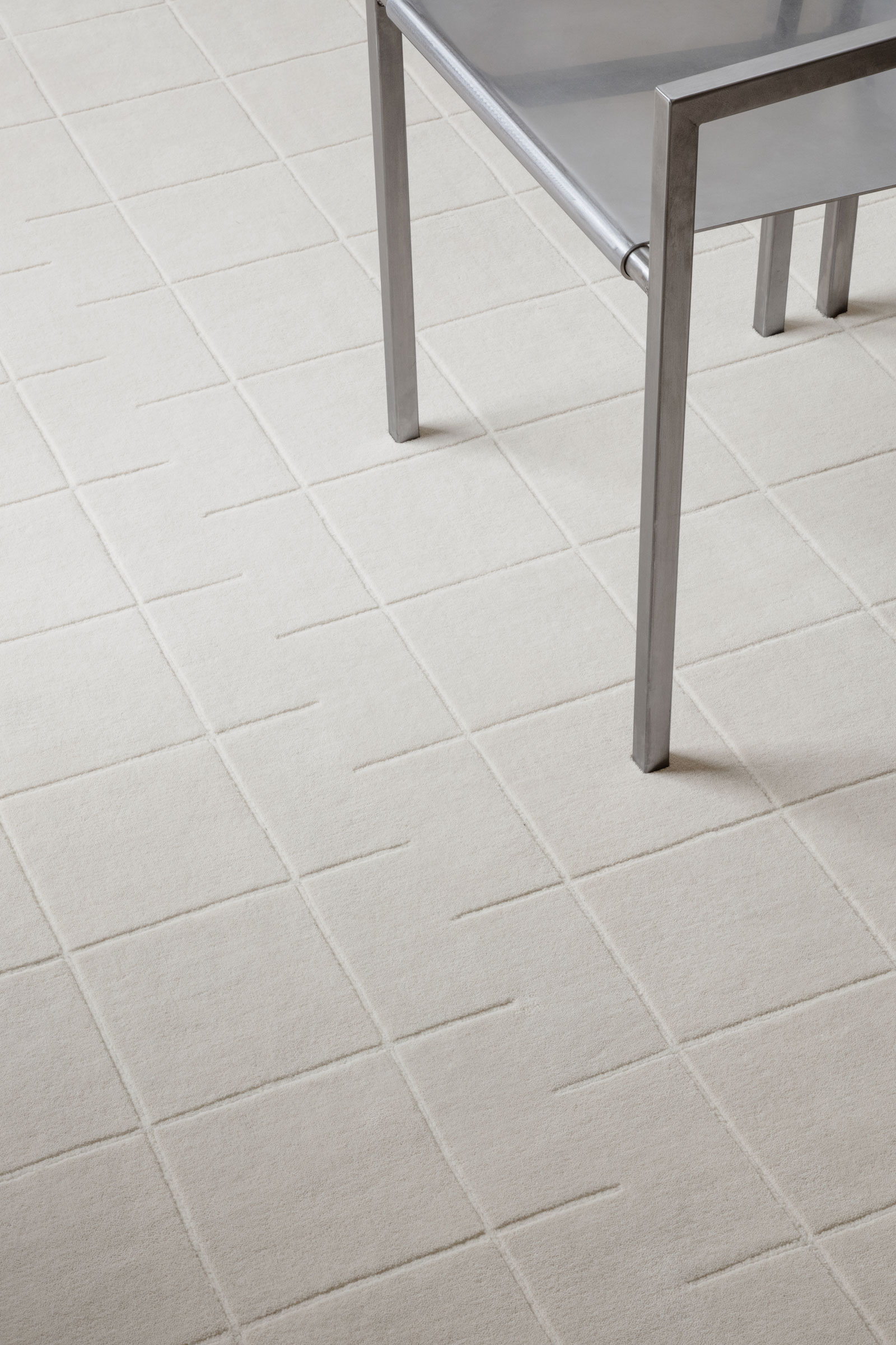 For this collection, Nordic Knots chose a neutral color palette with plush cut-pile quality and minimal design. The collection serves as a foundation for beautiful rooms. “The rugs, much like the grid itself, will then decide the composition of furniture and decor to achieve a balanced interior,” Fab says. “What’s great about a minimalist and structured design like this is that it goes as well in a modernist Los Angeles villa as well as a 19th century Parisian loft. The structured grid can complement the old as well as work as a foundation for modern decor.”