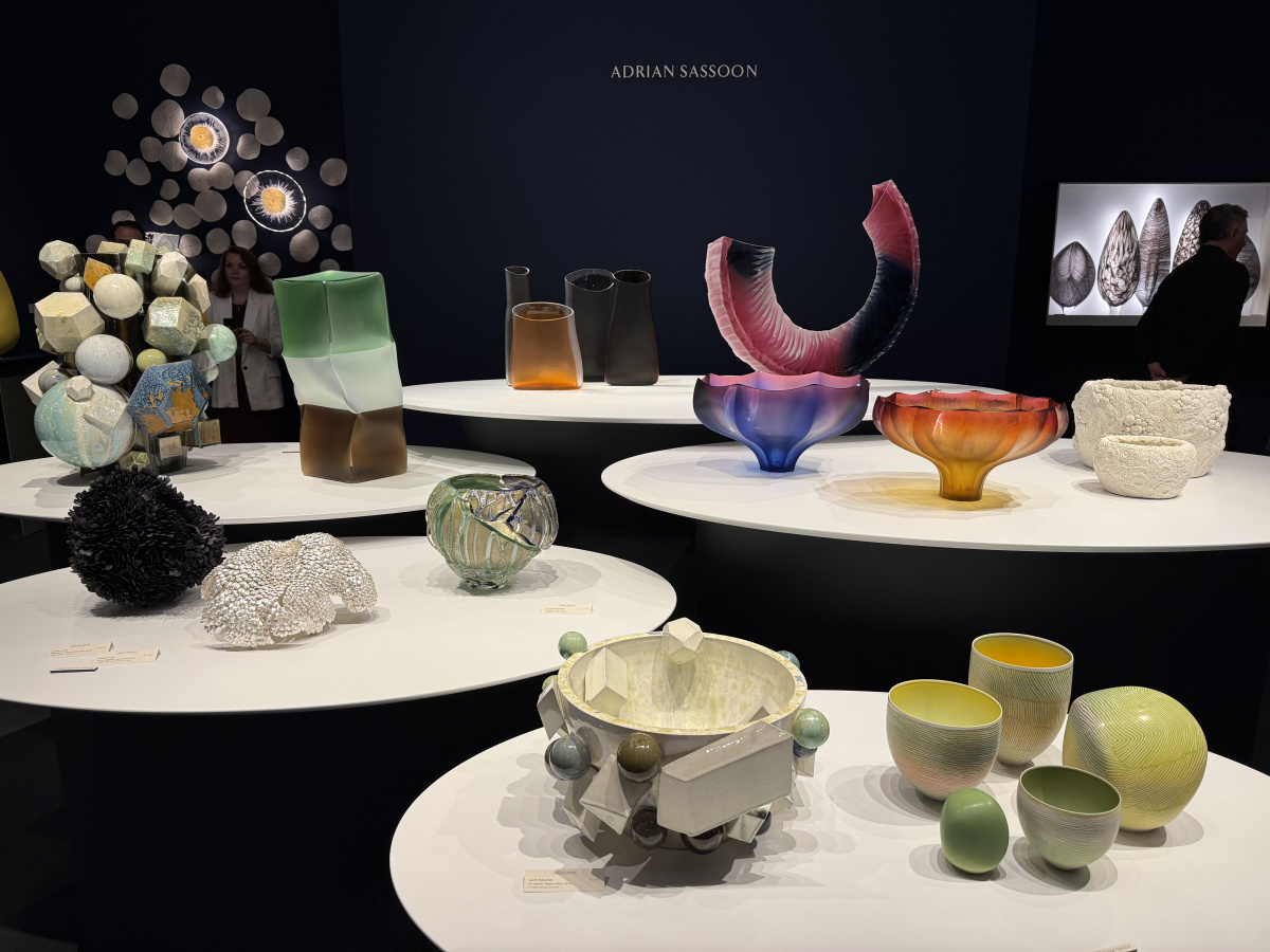 Adrian Sassoon’s exhibited offered a thoughtful counterpoint to the fair’s larger galleries by presenting finely crafted contemporary ceramics, glass, metalwork, and silver that highlight material mastery and sculptural form. Works on view ranged from Kate Malone’s Mega Magma and luminous blown and cold-worked glass by Joon Yong Kim, delicate vases by Hitomi Hosono, and nuanced sculptural objects by Junko Mori, Felicity Aylieff, and Andrew Wicks. The selection also included pieces by Hiroshi Suzuki, Vezzini & Chen, Galia Amsel, Colin Reid, Yukito Nishinaka, Ashraf Hanna, and Tobias Møhl, offering a cross-section of international makers whose works bridge craft and collectible design.