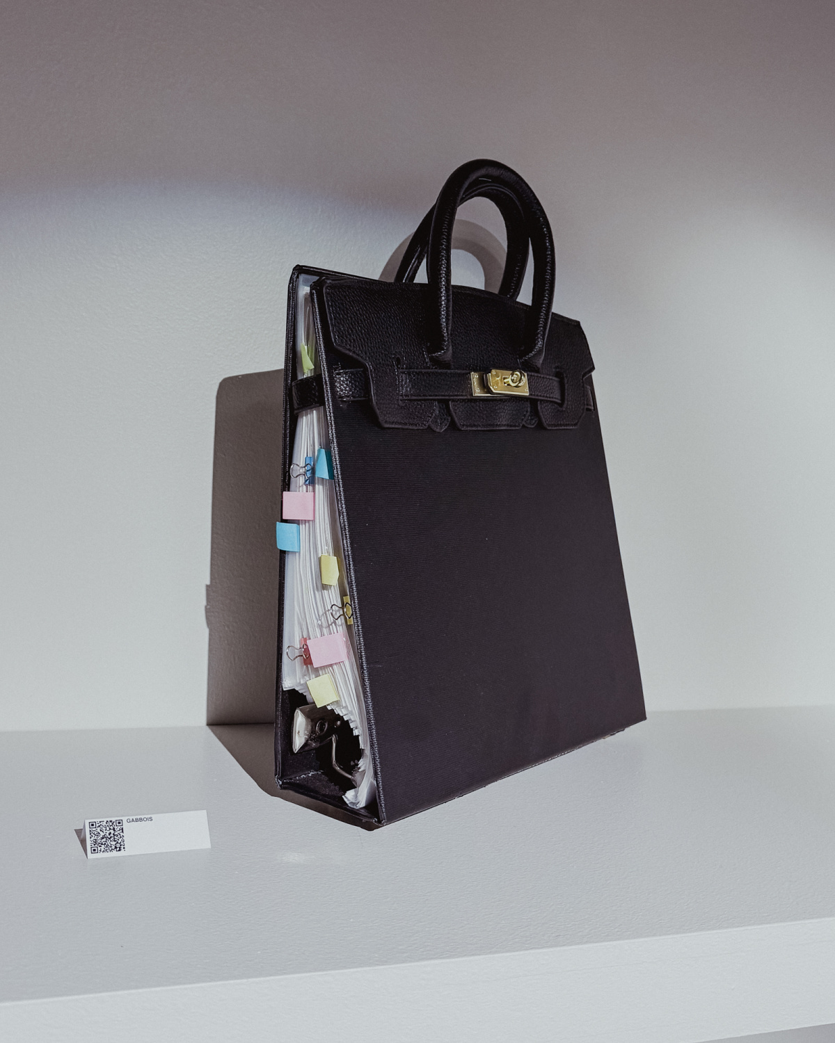 - A three-ring binder by Gab Bois styled after a classic Hermès handbag
