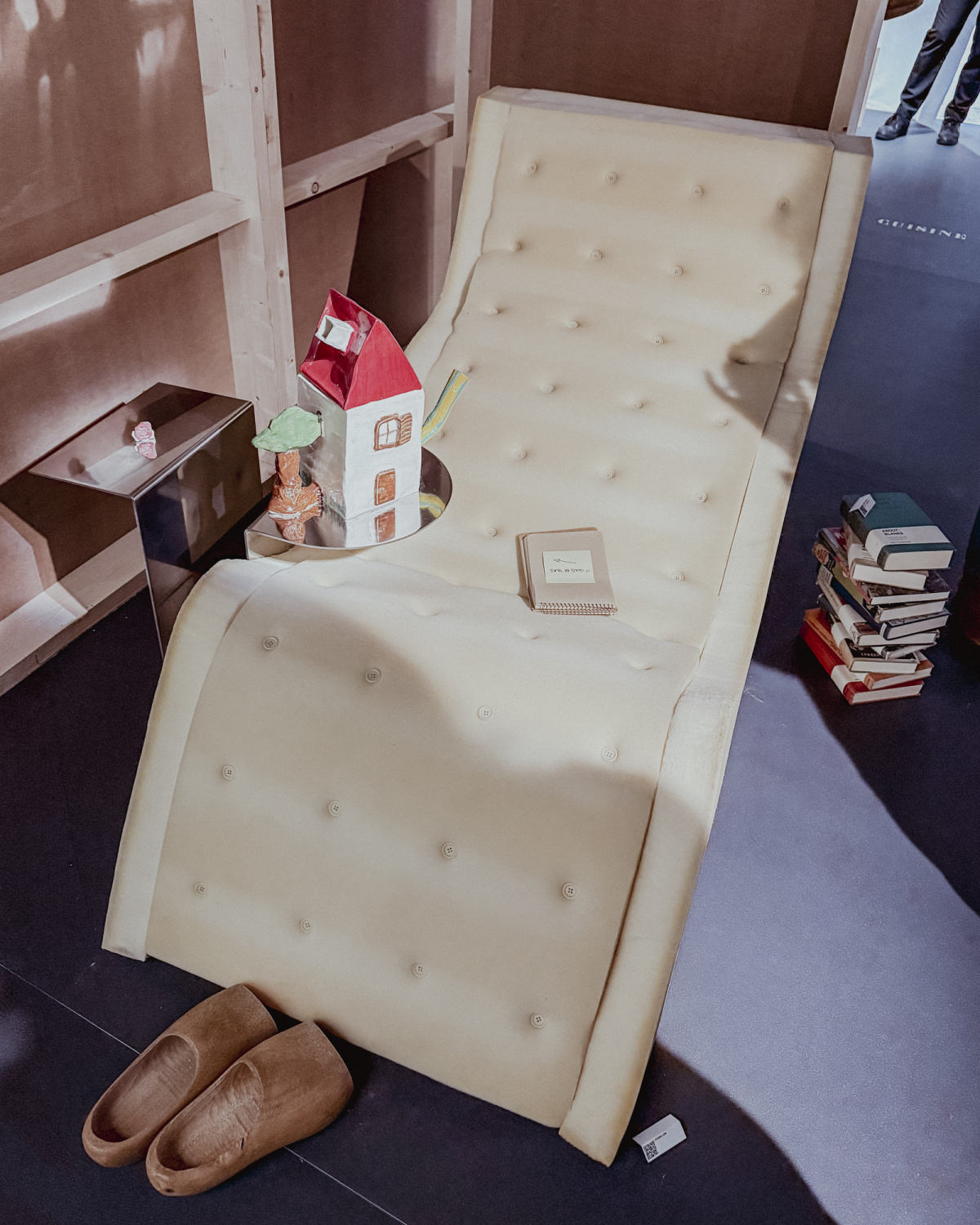 I met Amélie at her installation, “Welcome Home,” a new “house” at the fair, an open structure of five rooms where visitors can see across thresholds and watch one scene bleed into the next. She explained that the commission arrived with unusual freedom; the fair’s organizers “gave me carte blanche,” she said. The assignment was to design the official visuals and replace a former trends area with a lived-in domestic setting shaped by her point of view.
