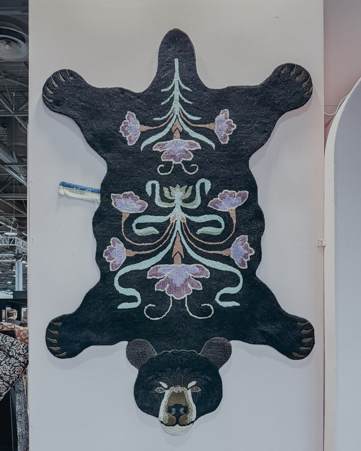 Every year I cave for one animal object. This time it was Doing Goods’ Blooming Black Bear Rug (left), a hand-tufted 100% wool piece with a cotton backing from the brand’s Tapis Amis line, cheerfully more textile than taxidermy. On the more serious side, I admired a buncheong ceramic by Seoul-based Huh Sangwook (right), known for animated motifs rendered with sgraffito.