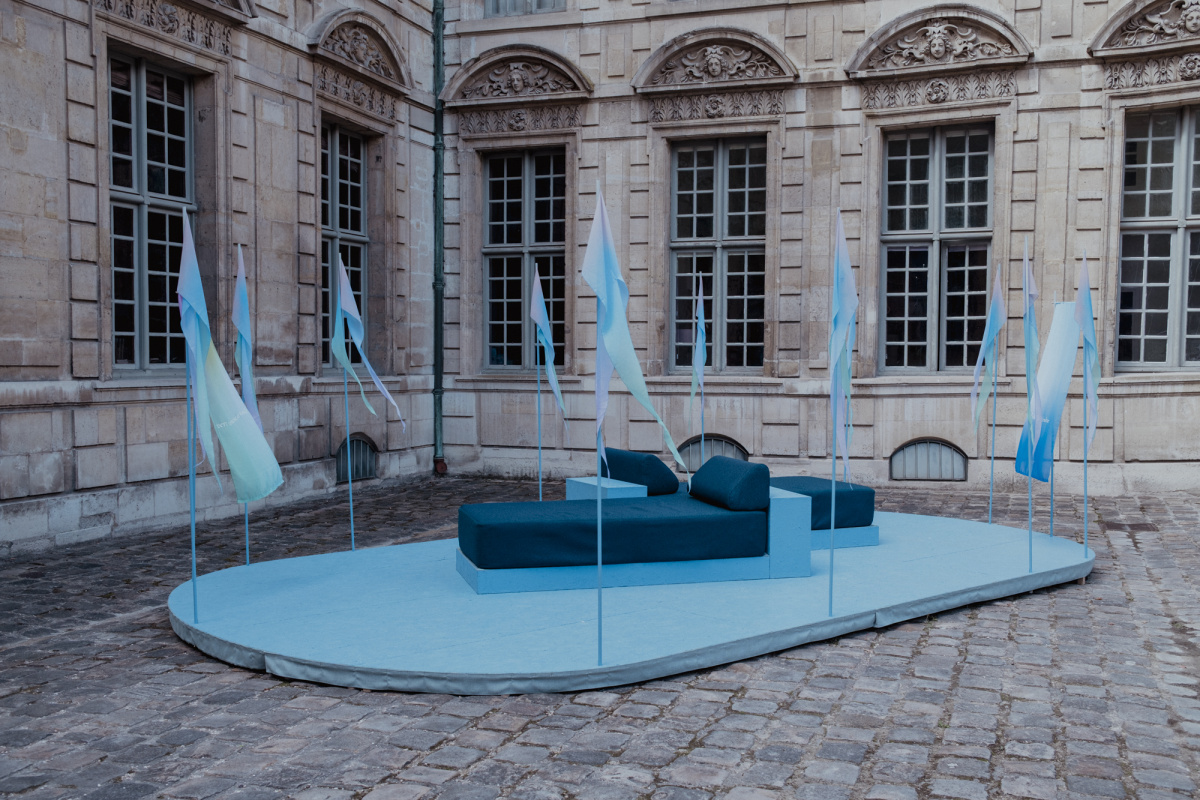 On the terrace of the seventeenth century Hôtel de Sully, designer Lucas Huillet and perfumer Alexandre Helwani presented “Folie,” an installation about mental health.