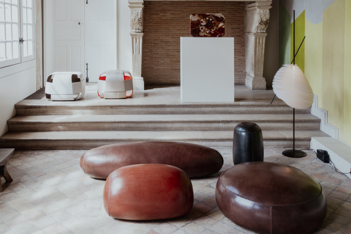 - Exterior of “Welcome Home” by Amélie Pichard, an open five-room installation with no hard walls, intentionally left unfinished to mirror evolving life. Inside are lightweight, multifunctional pieces, mostly self-produced by designers.