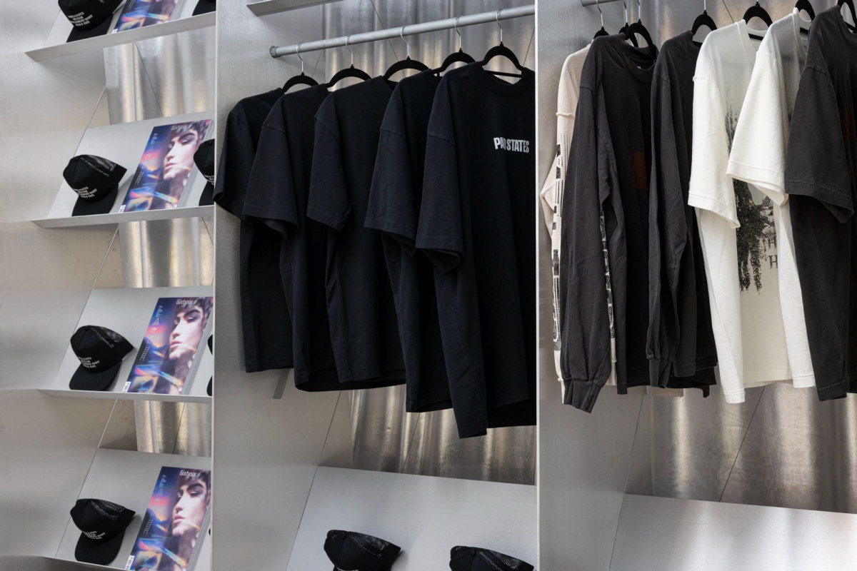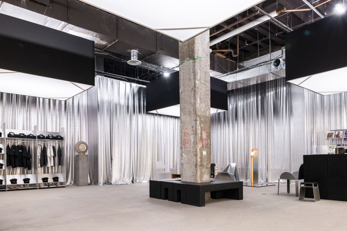Beyond furniture, PAVED STATES extended into a retail environment featuring small objects, home goods, scents, and wearables. Visitors can shop pieces by For Us, Dear, Sinead Cleary Ceramics, Rory Pipia, Clue Perfumery, Sofia Elias, Binaurale Fragrances, and Noel Mercado, offering take-home pieces that carry the show’s material focus. Throwing in some Lella and Massimo Vignelli classics through Heller Furniture also connected the design dots across generations, and Todo Pasa’s custom merch looked perfectly at home on metallic shelves.