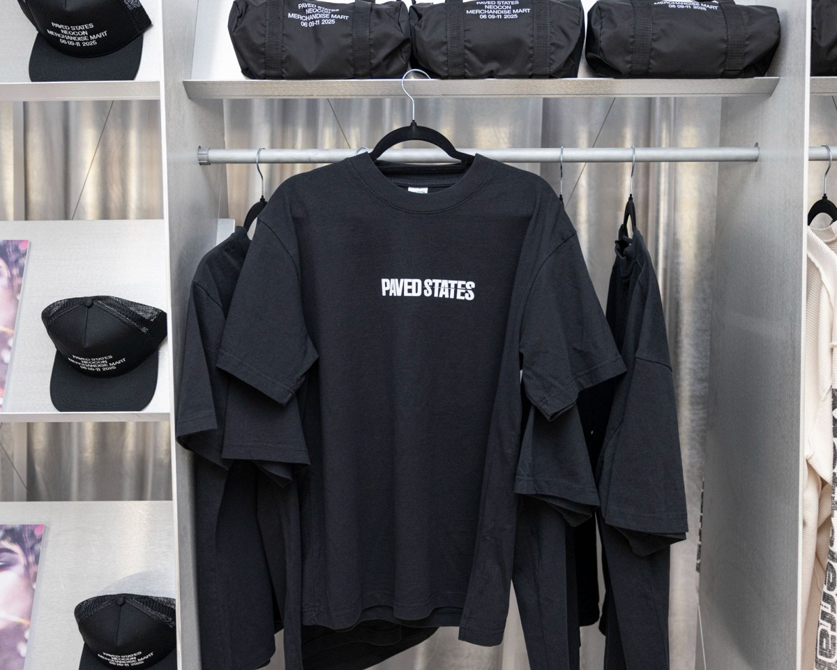 With over 50,000 design professionals descending on the Mart for NeoCon each year, we saw an opportunity sitting right in front of us. When we got the chance to partner with NeoCon for Paved States during Chicago Design Week, we knew we had to do it. Above: Sixtysix’s Issue 14 , PAVED STATES merchandise, and Todo Pasa clothing. Grand Horizon speaker by Marantz. Photo by Chris Force