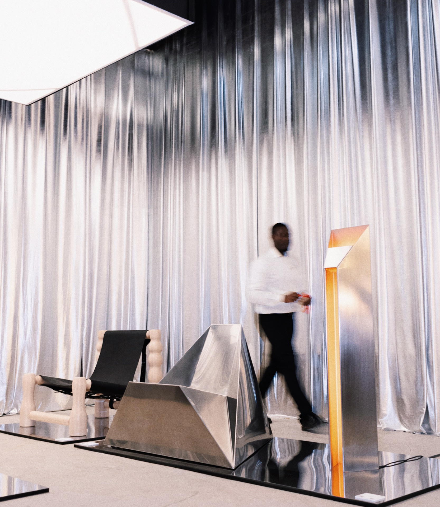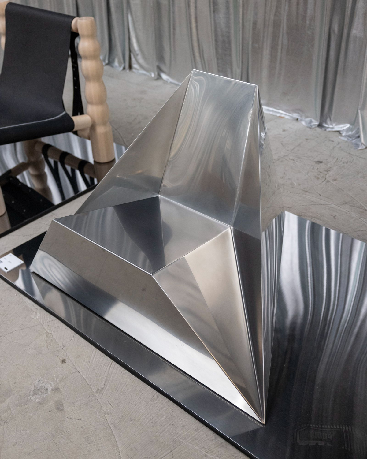 JUDEXAYA‘s mysterious Tetra Chair—based on geometry’s most elemental form—embodied the kind of functional art we were after. “It’s seamless in its form. There’s no traces of manufacturing, it’s all one piece,” they said, maintaining an air of mystery around their materials. “We don’t disclose this material. It’s just a metallic essence.”