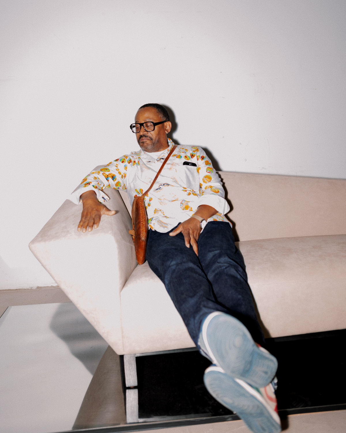 - Designer Norman Teague sits on Noam Nayberg’s sofa. Photos by Rachel Purry