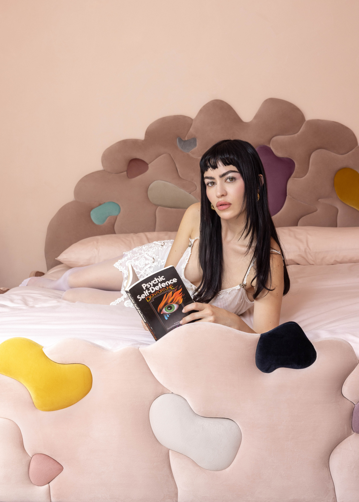 - Inspired by soft shapes and warm tones, Pilar designs her space to evoke comfort and lucid dreaming, drawing from feng shui and the connection between human consciousness and AI. Vintage dress and stockings