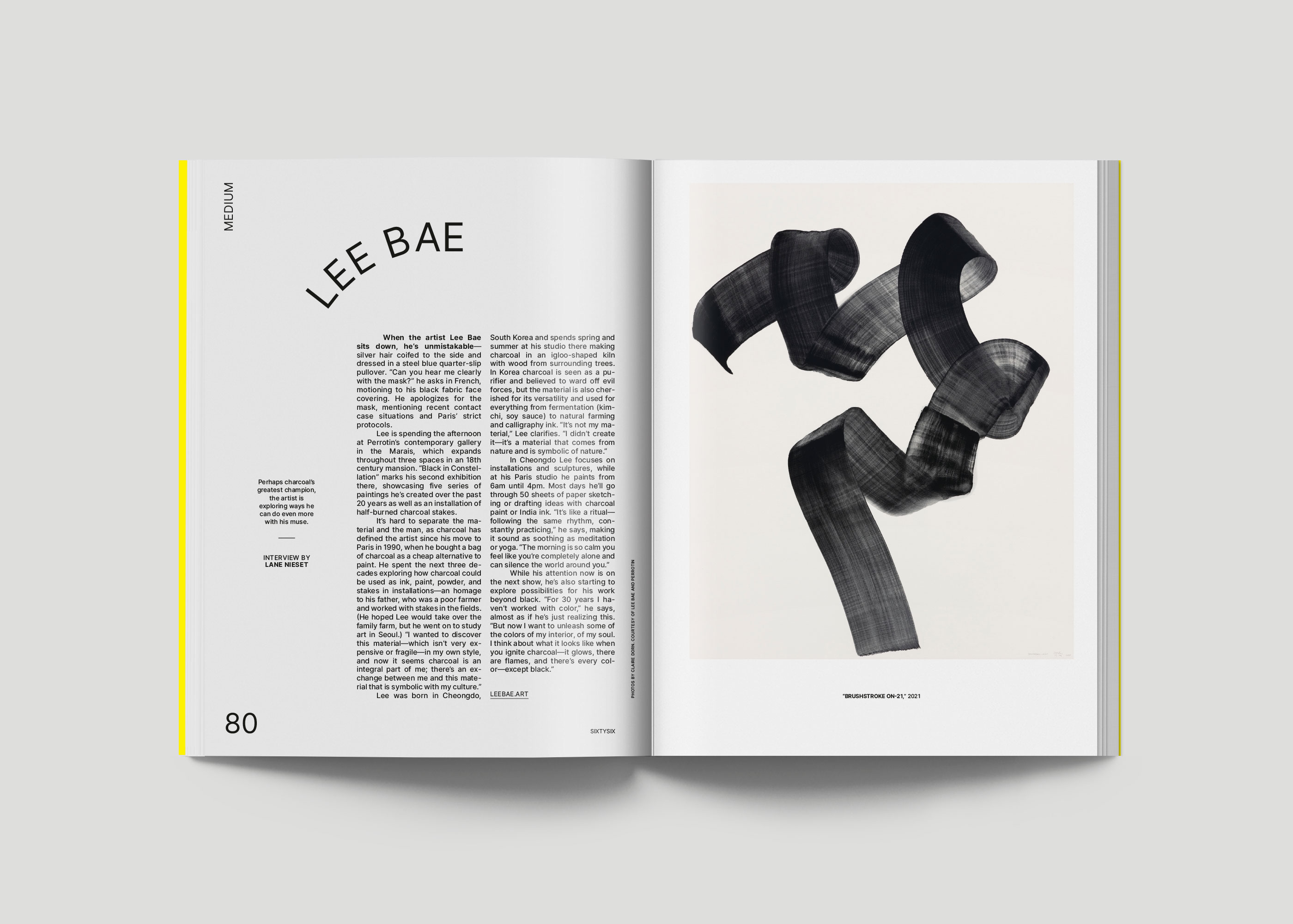 When it comes to transforming natural elements, we could not miss out on the opportunity to speak with Lee Bae, whose work with charcoal has redefined the material itself as much as it has defined his own career. But now, he may be ready to experiment even further, venturing into the realm of color. “I want to unleash some of the colors of my interior, of my soul. I think about what it looks like when you ignite charcoal—it glows, there are flames, and there’s every color—except black,” he told Sixtysix.