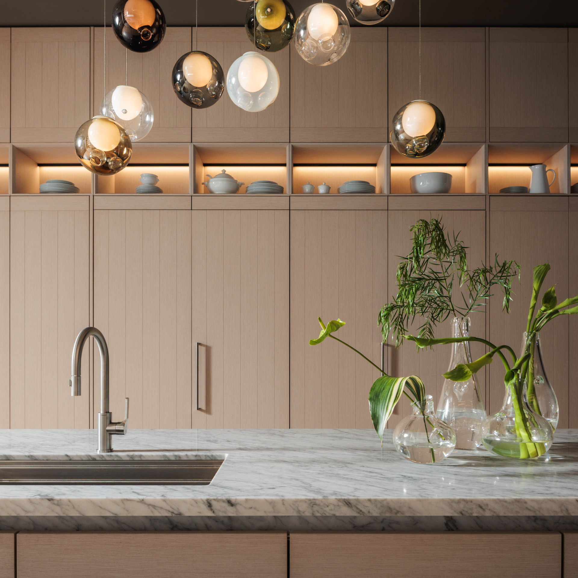 Every vignette captures a different lifestyle, from the calm precision of minimalist cooking to the layered warmth of communal entertaining. Photo courtesy of Petrini Studio