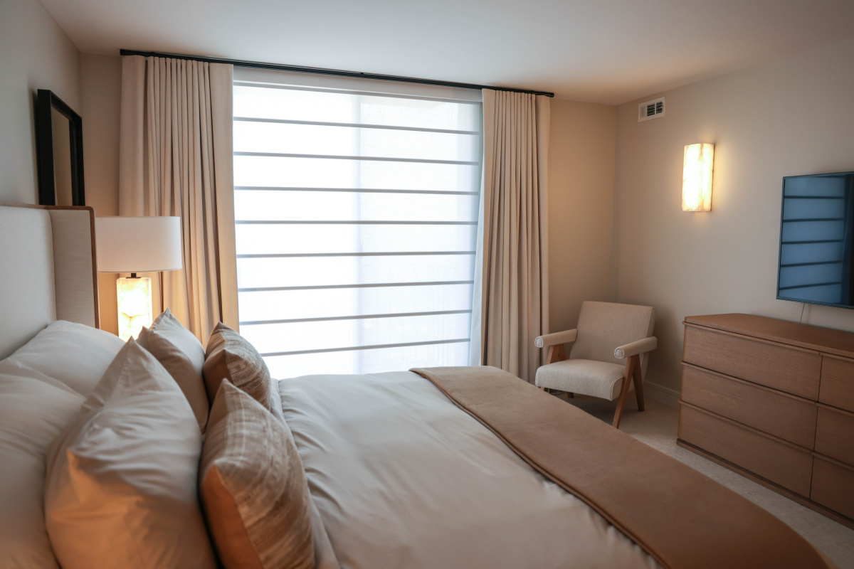 In Chicago we’ve had the chance to work on some incredible high-rise projects, especially along Lake Shore Drive with those stunning water views. Many of these clients come to us needing functional solutions, but they’re also looking for a “wow” factor, and that’s where it gets fun. Since we’re selling 26 different Hunter Douglas lines, we can tailor each space to meet their needs while creating something visually striking. Some of our favorite projects are those where the lake is the backdrop and the finished result is both practical and breathtaking.
