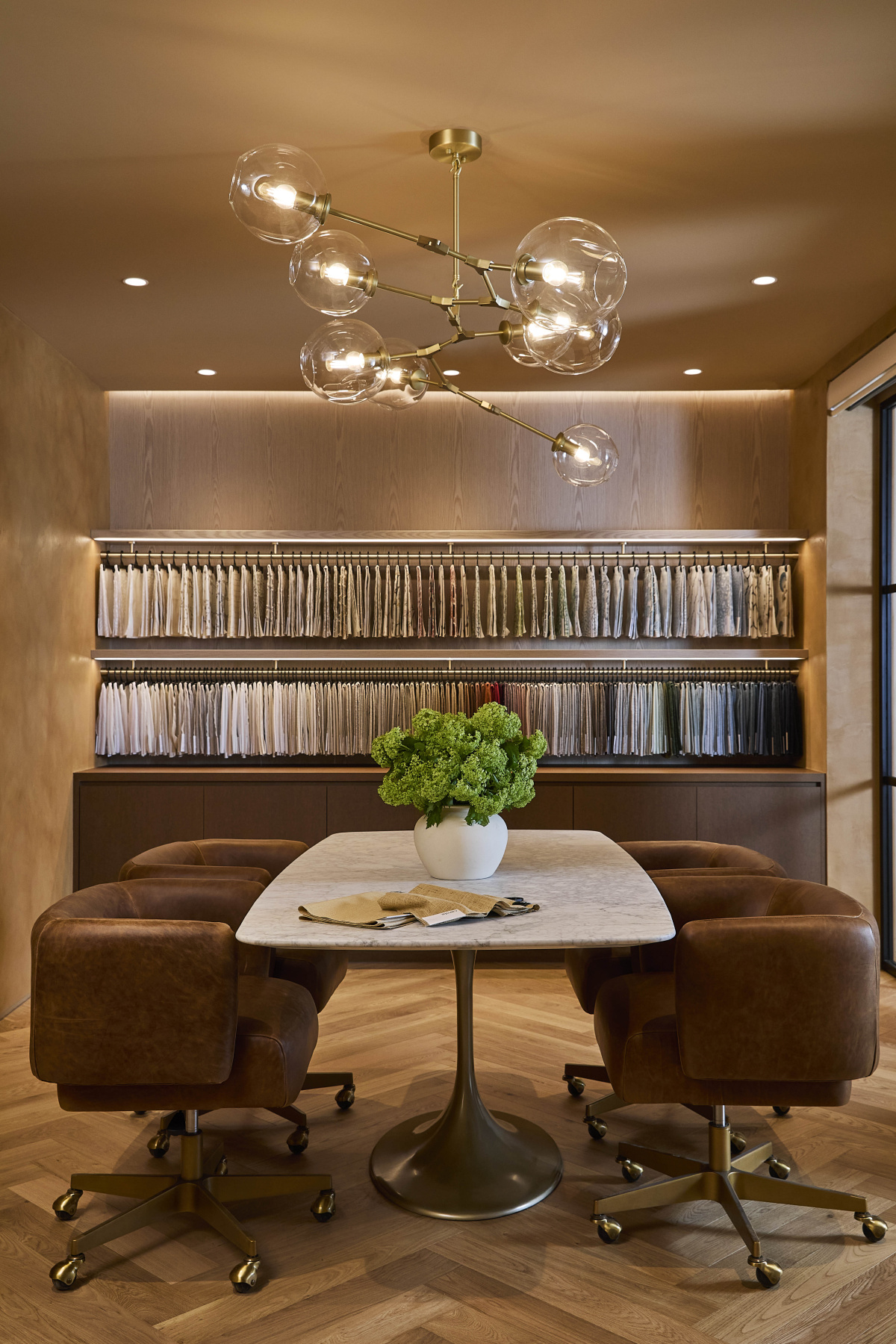 “For the first five years we stayed shop-at-home only. Our manufacturers encouraged us to open a showroom, but I hesitated. I didn’t want something that looked like every other dealer’s space. When we finally took the leap, we made it different,” Chrissy says. Photo courtesy of Skyline