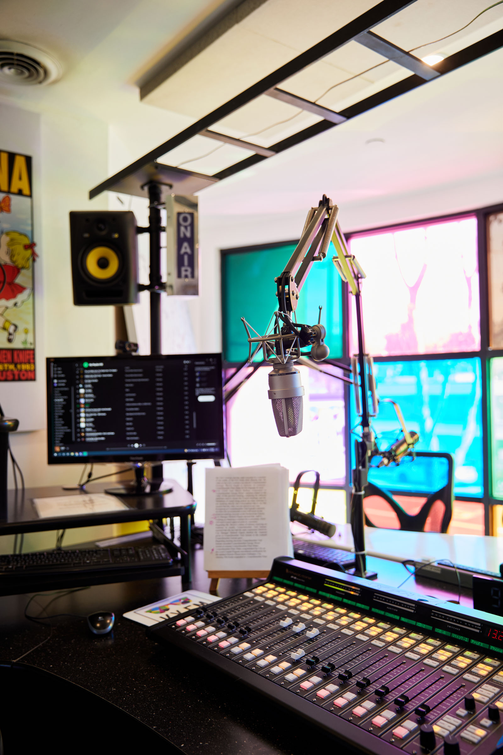 Sometimes Snippet records at KX FM, the nonprofit radio station Tyler launched more than a decade ago. Photo by Ye Rin Mok