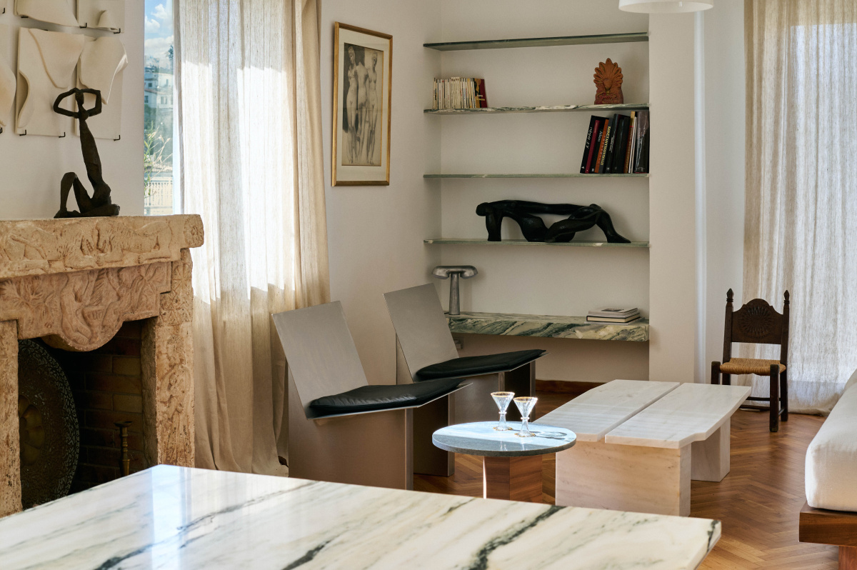 The small marble tables we designed represent archaeological fragments and ruins, recalling the Athenian marble quarries and the fragmentary nature of how we experience ancient art today. We’re pulling from thousands of years of Greek history and culture—archaic archaeological forms, Persian and Greek arts, the neoclassical architecture of Athens—but making it feel current and relevant to how we live today.