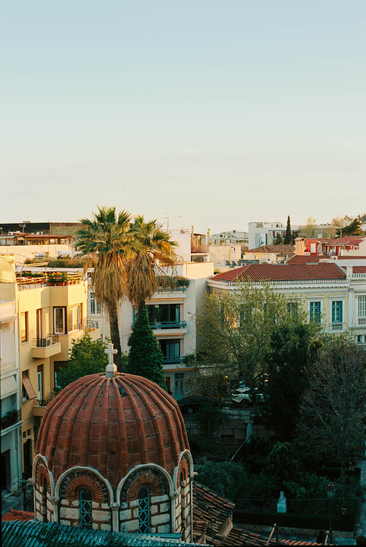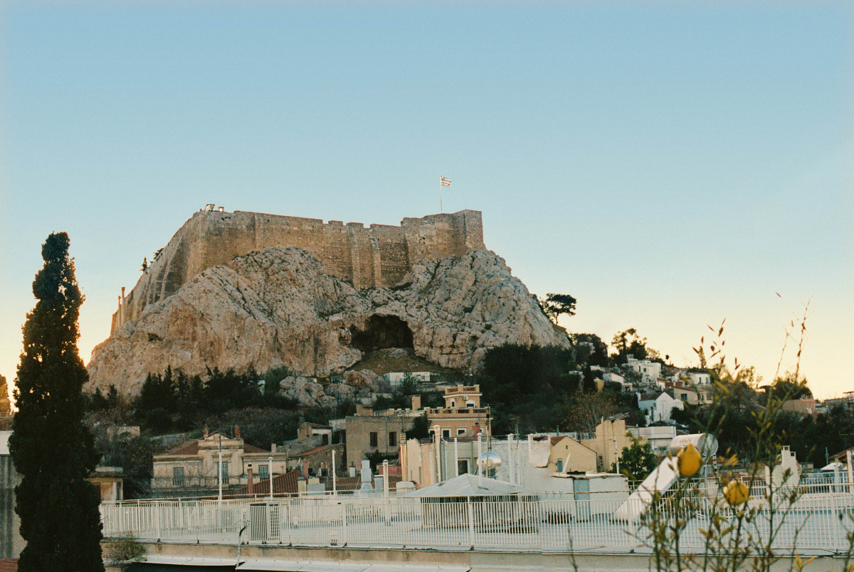 From this specific angle, you don’t actually see the Parthenon directly. You see the mount of the Acropolis itself, the rocky hill, which is a very uncommon perspective. Most views in Athens show you the Parthenon head-on, in all its glory, but this side view is much more unusual. People who visit are always surprised by it.