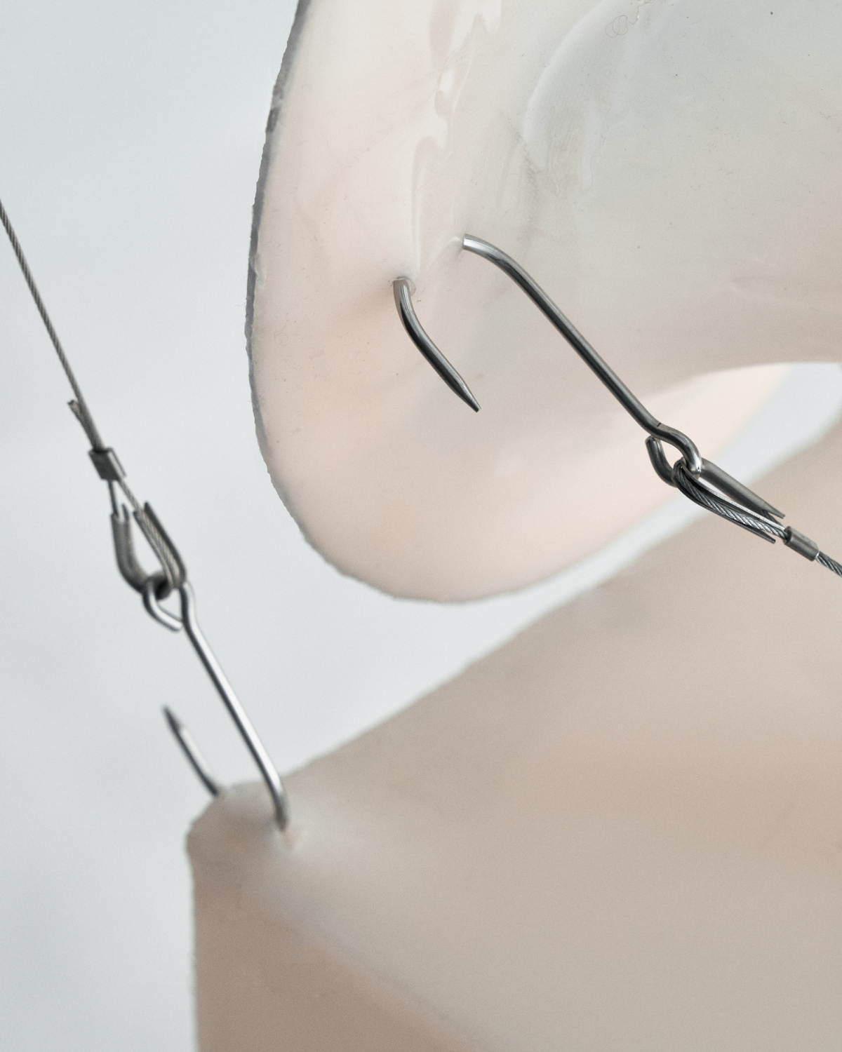 “Creating sound as form has been something I’ve been researching for about 15 years now,” she says. “I’m drawn to things that feel engineered but still vulnerable. The biggest influence was material experimentation. With Suspended Organs I let silicone behave in ways it’s not usually allowed to, and saw how sound became something physical rather than just audible.”