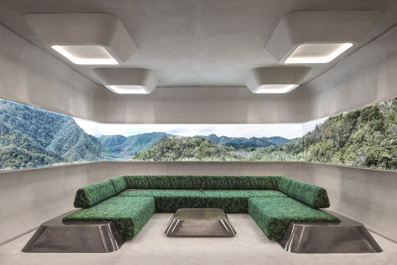 - One of One@Tokyo’s lounges, with a view outside to Tokyo’s view.