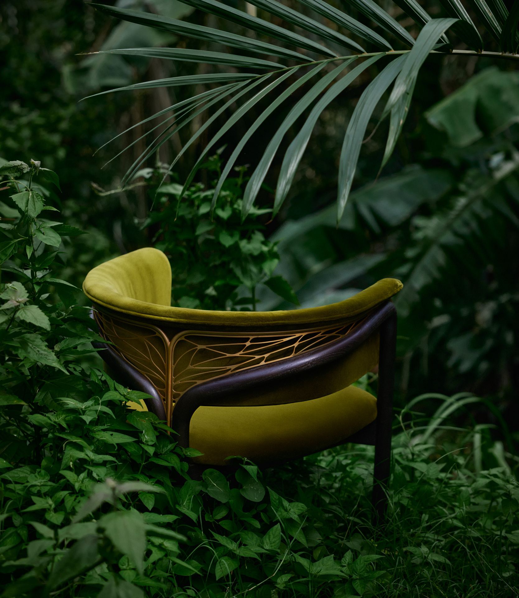 - “Everything here from a design standpoint is based around the dragonfly. We have a velvet chair in this collection, and you can really see the inspiration coming in from the insect’s wings. Photos courtesy of Ethnicraft