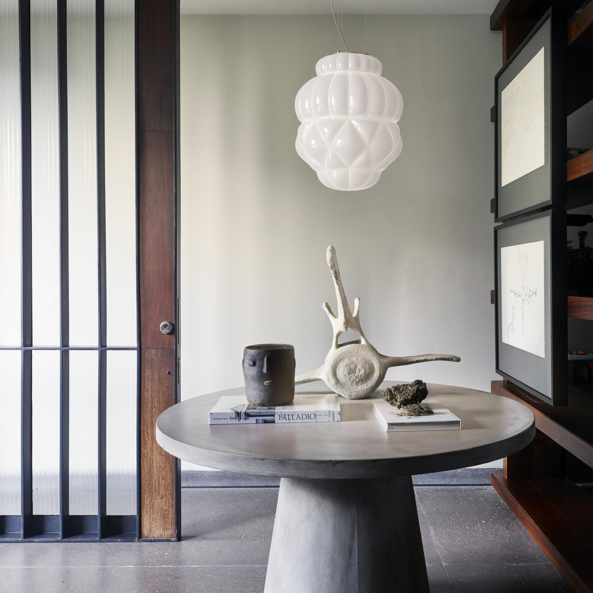 - Mouth-blown and crafted by hand, each lamp is unique. Designer Luca Nichetto explains how each bubble in the glass is slightly different and captures the “blow of a person” and the specific circumstance the lamp was made in. Courtesy of Barovier&Toso