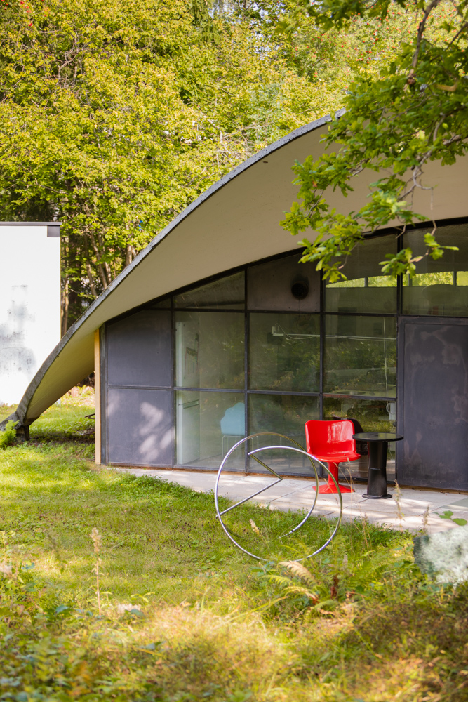 - With nature palpably close in the studio, the atmosphere shifts with the changing seasons. One of the walls is made entirely of thermal glass. Located in a private grove in Kauniainen, the studio was designed by Yrjö and engineer Eero Paloheimo.