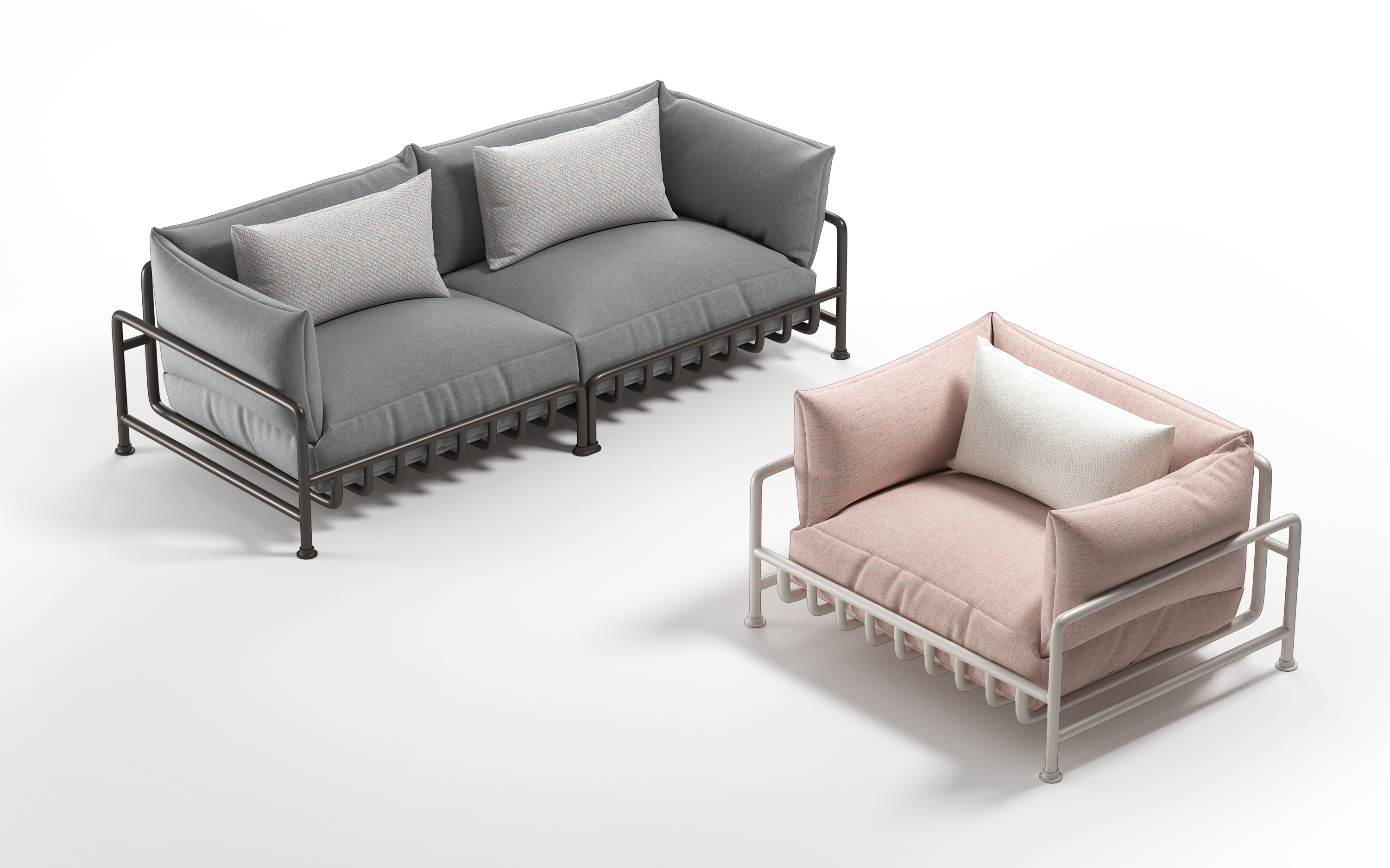Caddy’s stamp-joined, aluminum-tube base and zip-linked cushions, in the flesh. COURTESY OF ALEXANDRE TOUGUET.
