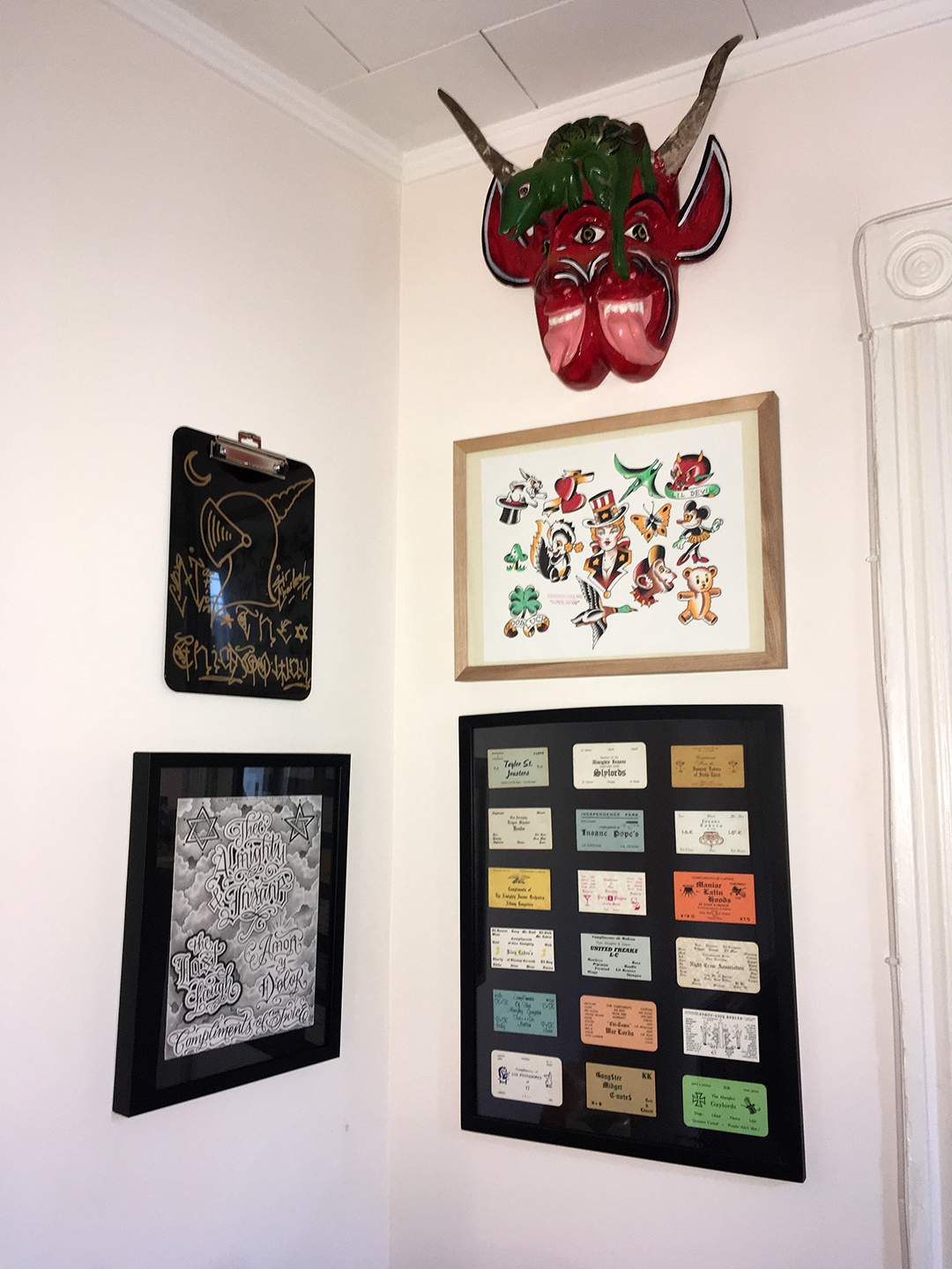 I’ve gotten some feedback. Fortunately, it’s all been positive. One good story is a woman who had bought a copy and ended up giving it to her friend’s next door neighbor in the Pilsen neighborhood of Chicago. He was a retired old school gang member and had heard on the street that a compliment card he created and printed back in the day had been published in a book. Lo and behold there it was. She gave him the book on the spot and he put it on display on his mantle. She sent me a photo. The book is turned to his card’s page and next to it is a figurine that symbolized his nickname “Joker”.