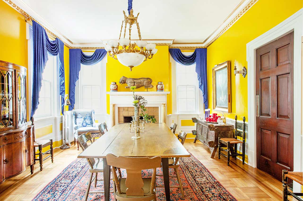 Sasha Bikoff, Garden State Revival House for restaurateur Ed Schoenfield & Elisa Herr, dining room, Newark, New Jersey, completed in 2016.