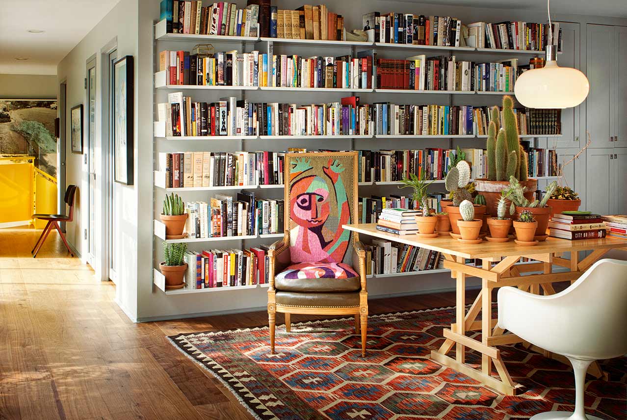 The Archers, Silver Lake House, for video producer Sharon Oreck and cinematographer Bill Pope, library, Los Angeles, California, completed in 2017.