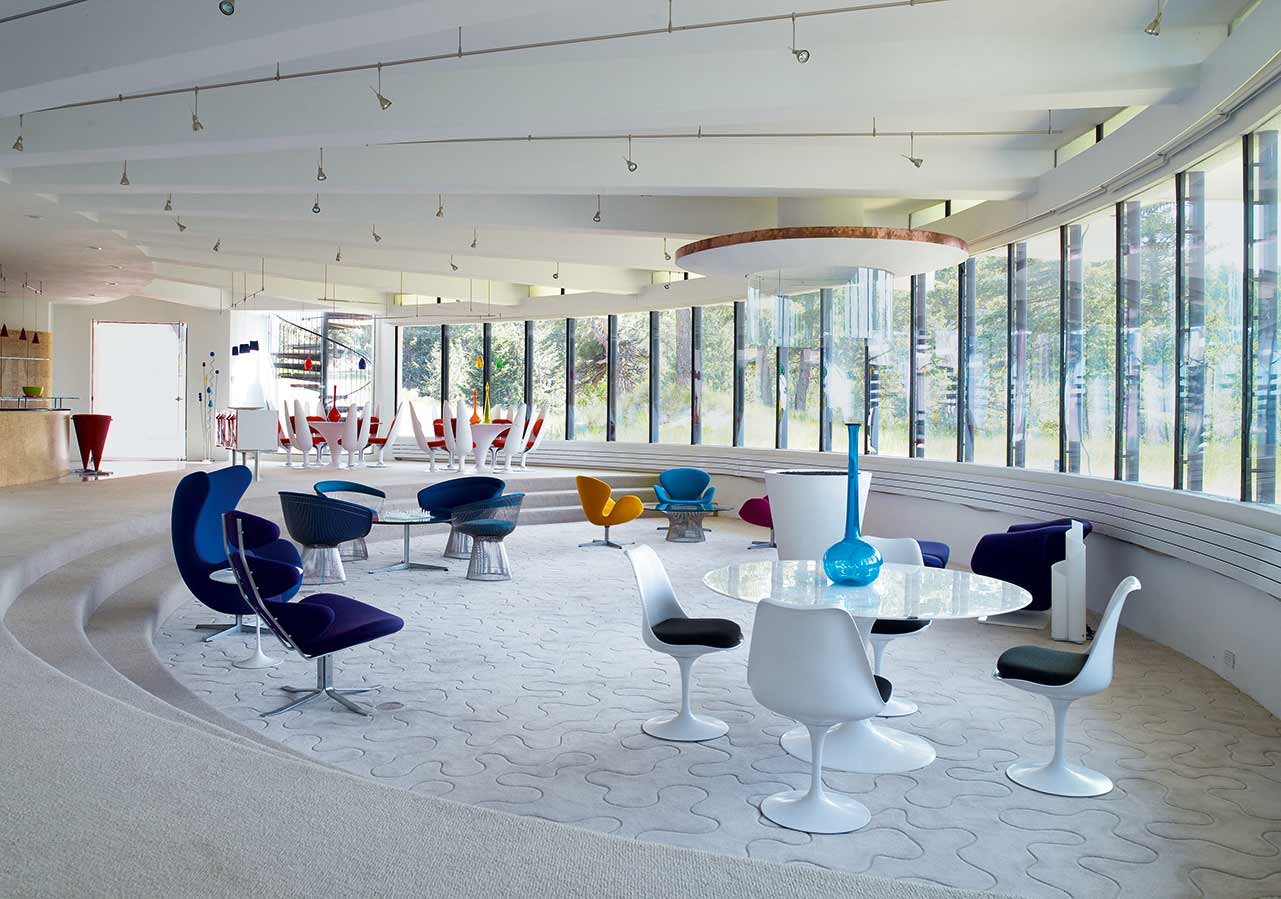 “People aren’t angular, so why should they live in rectangles?” Charles Deaton, the architect and intended inhabitant of the Sculptured House is reported to have said when asked about the remarkable curves of the elevated, clam-shaped residence. Having fallen into a state of disrepair, it wasn’t until 1999 that the Sculptured House received an interior befitting its famed sculptural expressionist exterior, which appeared in Woody Allen’s 1973 sci-fi comedy Sleeper.