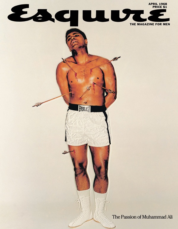 In 1968, Lois made a case for Muhammad Ali’s religious refusal to fight in Vietnam. Inspired by a Francesco Botticini painting, he depicted him as St. Sebastian, a Roman soldier who survived death-by-arrow for converting to Christianity. The Feds didn’t take too kindly to the message.