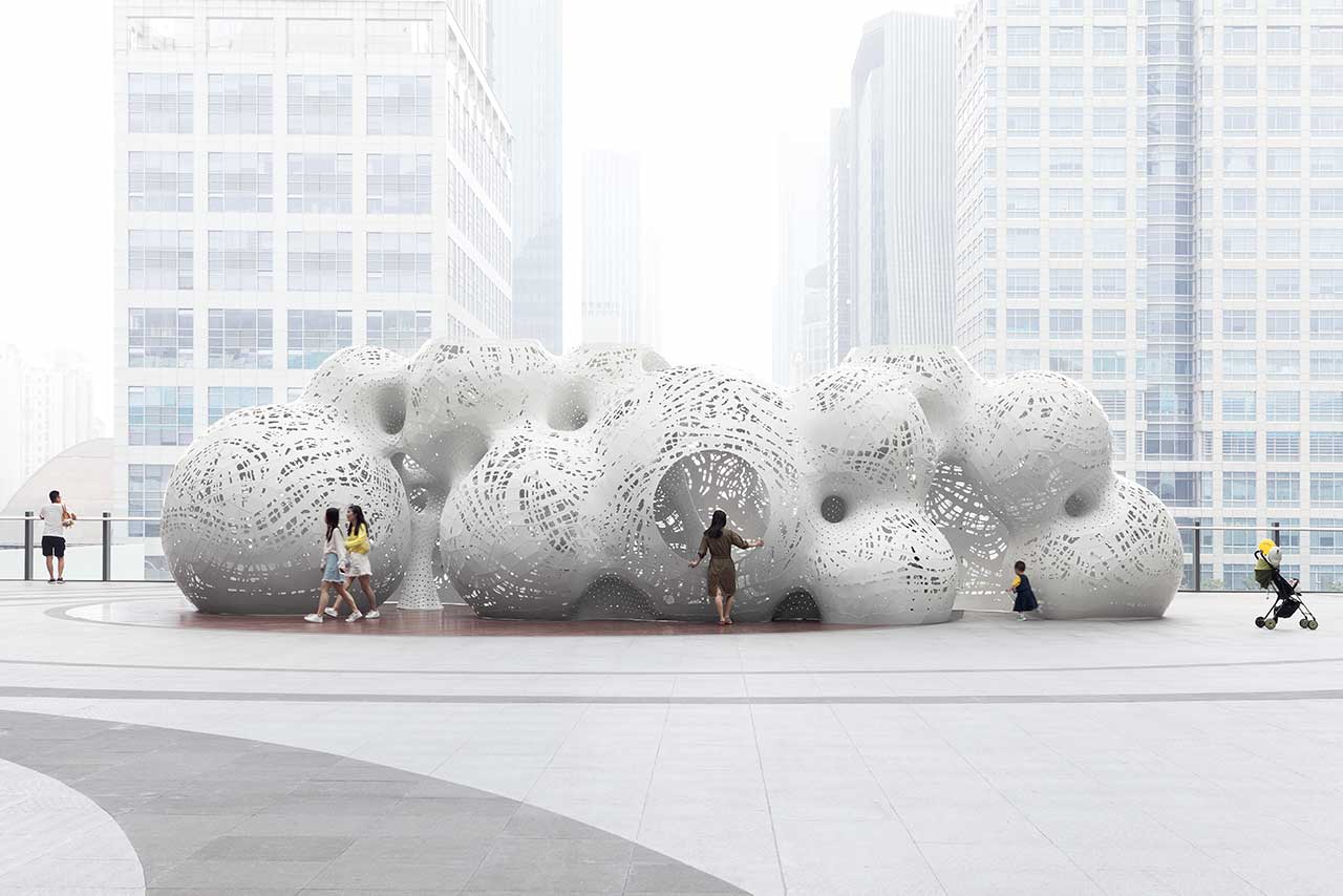 ‘Boolean Operator,’ a large-scale outdoor pavilion (bottom), was installed at the Suzhou Center for the Jinji Lake Biennial in China. Photo courtesy of Theverymany.