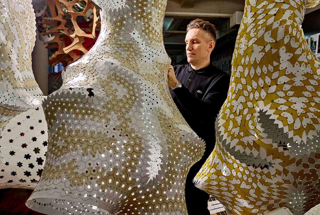 At first I just wrote code, then we started making small proofs of concept, which were a little bit bigger than a model. Little by little, the art world picked up on that. They were more interested in the final products as large models in small installations. Then they became large installations. Then suddenly people were asking us, “Hey, can you do a pop-up store? Can you actually do a permanent one outdoors as a sculpture?” And we grew both the scale and the permanency. So we went from the computations, the nerdy things, to suddenly producing space, and that’s where I think the art and architecture combination came from.