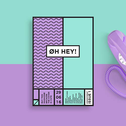 Shanti’s design for the “Oh Hey!” zine nods to the grid structure and bold palettes of comic books.
