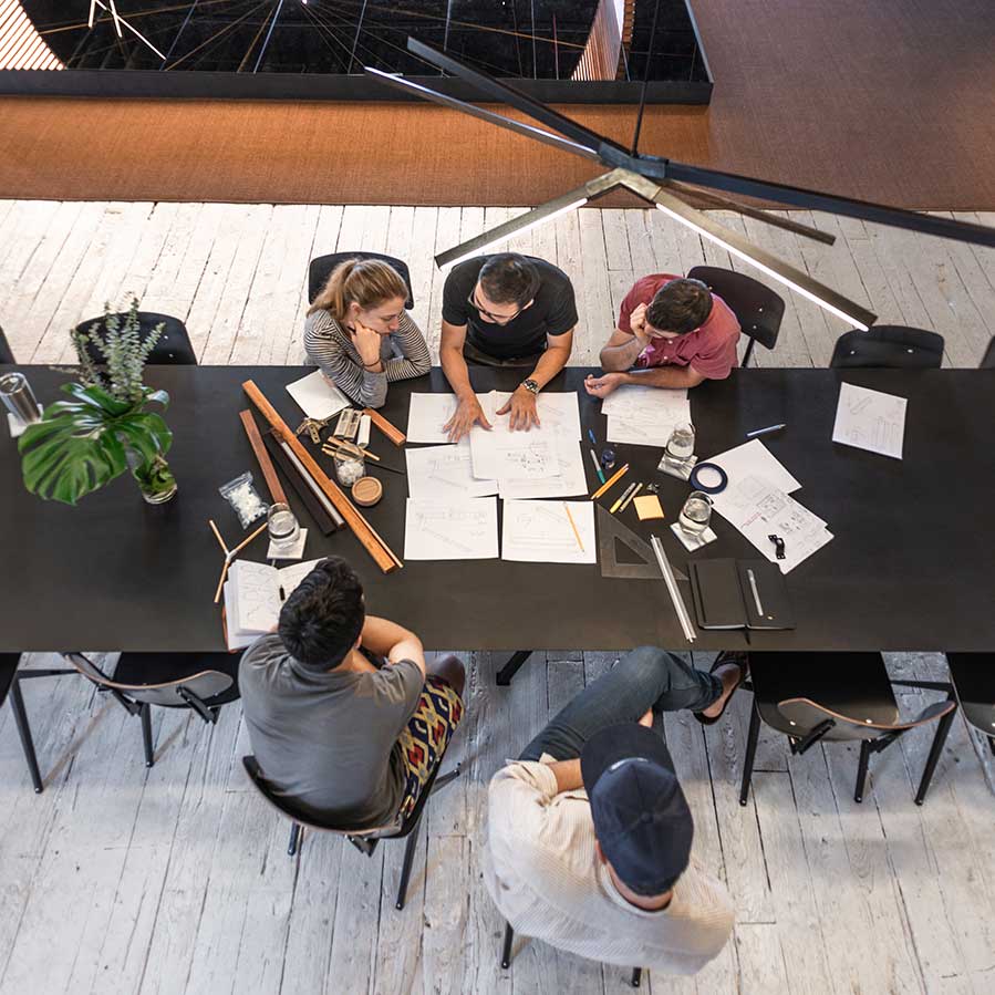 A dozen full-time employees and some interns collaborate in the open space that is Stickbulb’s studio in Queens. “Everything flows from one department to the next—even flowing between our design space, production, and showroom space,” Chris says. There’s a kind of constant feedback loop, with frequent conversations, design tweaks, and other improvements made quickly. “We like the nimbleness that offers us and the ability to be constantly doing better, sometimes in very invisible ways.”
